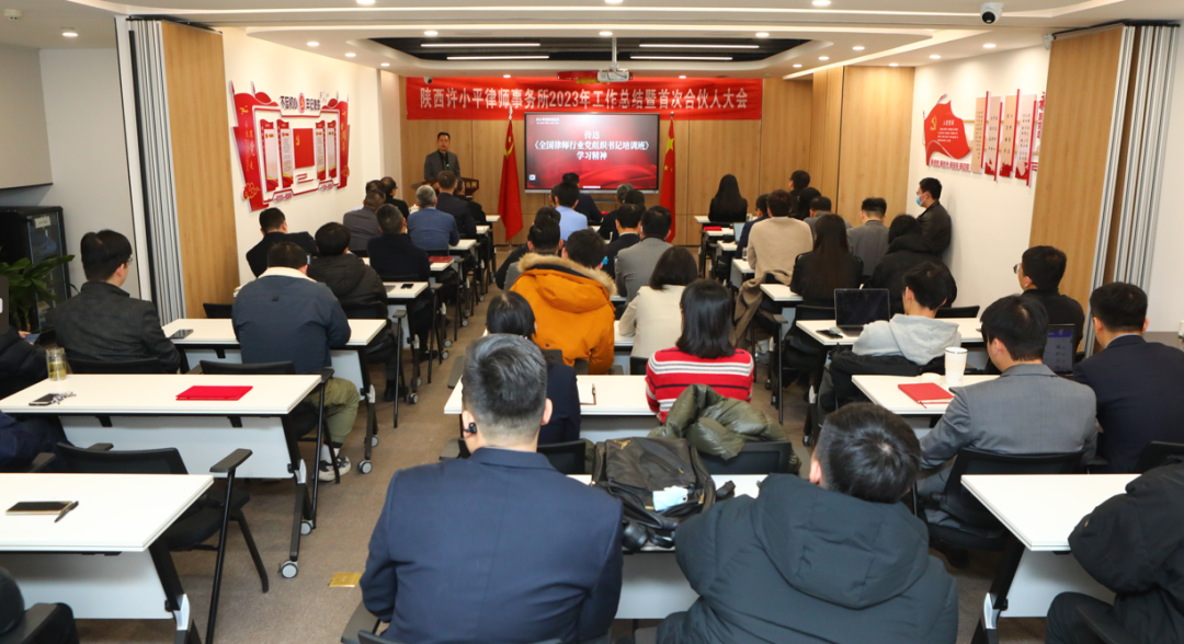 2023年12月13日至16日,中央组织部、中央党校(国家行政学院)、司法部联合举办全国律师行业党组织书记培训班,通过视频直播形式对全国律师行业党组织书记开展培训。为深入学习贯彻全国律师行业党组织书记培训班精神,促进培训成果转化,以高质量党建引领律师工作高质量发展。2023年12月29日,陕西许小平律师事务所党支部组织召开专题会议,传达学习全国律师行业党组织书记培训班会议精神。律所全体党员律师参与此次会议。