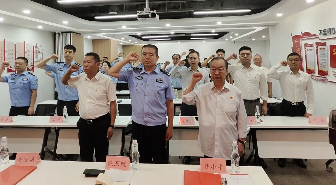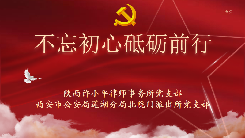 为庆祝中国共产党成立102周年,进一步强化新时期警民合作关系,2023年6月30日上午9时30分,陕西许小平律师事务所党支部与西安市公安局莲湖分局北院门派出所党支部“迎七一”党建活动在律所五楼接待中心党员活动室举行。西安市莲湖区司法局党委委员、副局长、莲湖区律师行业党委书记陈卫胜,莲湖分局北院门派出所党支部书记、所长胥宏斌,莲湖分局北院门派出所教导员周延,陕西许小平律师事务所党支部许小平律师及北院门派出所干警、律所党员律师参加此次会议。会议由党员律师陈骥主持。