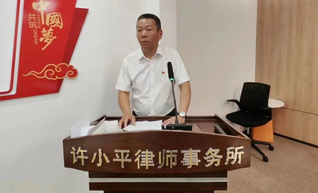 许小平律师回顾了自己在党的荫庇下如何一步步做出成绩、取得进步、获得成长的历程。他说:“我们一定要铭记党的恩情,牢记自己的党员身份,坚持不懈地为广大人民群众服务”。