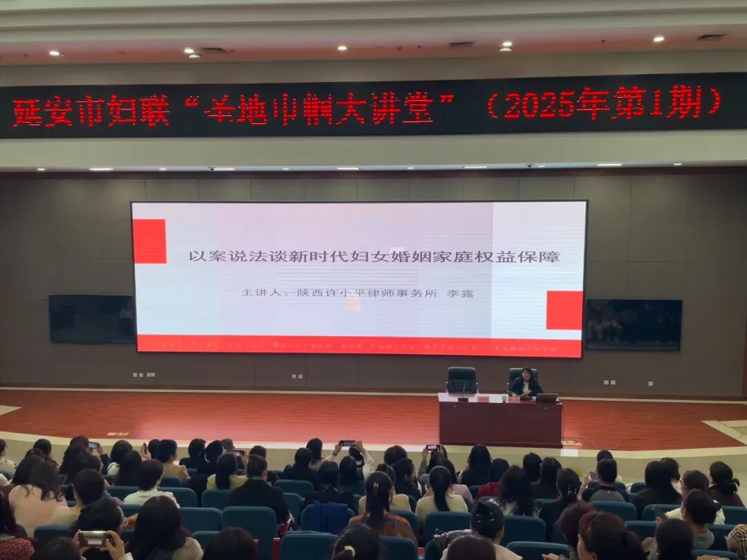 为了深入学习贯彻党的二十届三中全会精神,积极响应国家关于加强妇女权益保护的号召,进一步提升妇女干部的法治素养,2025年3月13日,由延安市妇联主办,延安市图书馆承办的“巾帼圣地大讲堂”讲座在延安市图书馆成功开展。陕西省三八红旗手、陕西许小平律师事务所高级合伙人李露律师受邀开展“以案说法谈新时代妇女婚姻家庭权益保障”主题讲座,来自市直机关、企事业单位妇联组织负责人、优秀女干部,县区妇联主席,团体会员负责人,部分“三新”领域妇联组织负责人等600余人参加活动。现场座无虚席,气氛热烈。
