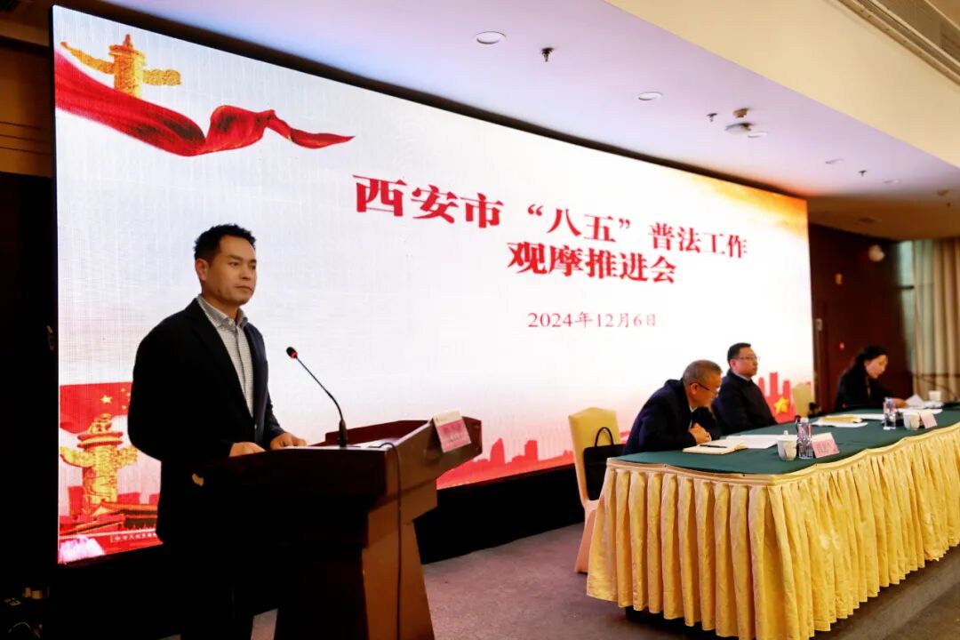 12月6日下午,由中共西安市委全面依法治市委员会办公室、市委宣传部、市司法局联合主办的全市“八五”普法工作观摩推进会隆重召开。本次会议旨在全面贯彻落实党的二十大精神,总结“八五”普法阶段性成效,部署下一阶段工作重点,进一步推动法治社会建设。