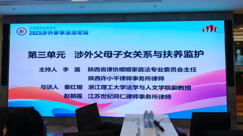 2025年10月18日,由中国国际私法学会主办,南京市律协婚家委、南京市公证处家事公证业务委员会承办、法德东恒律师事务所协办的2025年涉外家事法治论坛在南京成功举办,中国国际私法学会副会长杜焕芳出席论坛并致辞。陕西许小平律师事务所高级合伙人、陕西省律协婚姻家庭专业委员会主任李露律师受邀参会,并担任论坛第三单元主持人。
