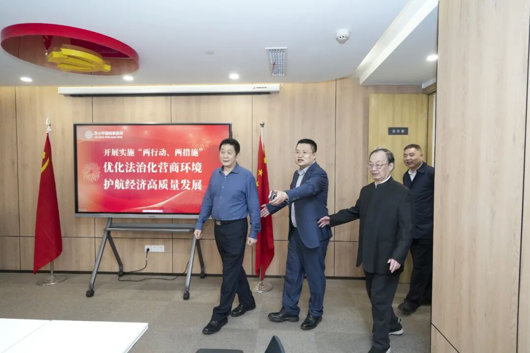 西安市政协社法民宗委主任李健彪,市政协社法民宗委兼职副主任、市伊斯兰教协会副会长兼秘书长马贵平,市政协社法民宗委兼职副主任、西北政法大学法治学院、法律硕士教育学院副院长张书友,市政协委员、中天西北集团项目总经理、民建雁塔支部主委许永强,市政协委员、西安工业大学光电工程学院副所长孟祥众,市政协社法民宗委办公室主任袁文鸿、二级调研员卫鹏冉等市政协领导和市政协委员参观了律所接待大厅,深入了解律所的历史和业务情况,并在座谈中认真倾听了律师事务所负责人和律师代表在深入实施“两行动、两措施”过程中具体工作举措的汇报。