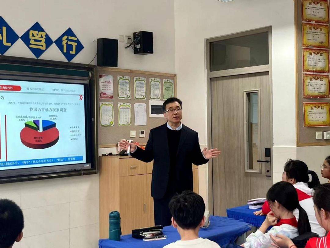 讲座中,陈平律师结合一系列生动的案例对校园欺凌的概念、手段、危害以及所需承担的责任进行了详尽地讲解,让每一位同学都深刻认识到校园欺凌的严重性。陈平律师对同学们强调道,我们应该远离任何形式的校园欺凌,不仅不能做欺凌行为的附和者和旁观者,更要从自身做起,从小事做起,践行“文明守礼,善待他人”的原则。他进一步指出,在日常生活中,我们要学会保持冷静,懂得控制自己的情绪,避免矛盾升级,尤其不能以暴力来回应暴力。通过一系列讲解,陈平律师希望能在同学们心中播下和平、友善与尊重的种子。