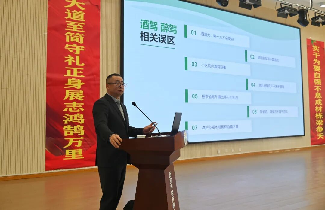 随后曹一律师以“守护青春助成长——守护未来,普法先行”为主题,从校园、家庭、社会三个层面结合现实案例对常见违法犯罪行为和造成的不利后果并如何预防未成年人犯罪方面进行了生动地讲解。讲座中,曹一律师强调了预防犯罪的重要性,鼓励学生树立正确的价值观和人生观,自觉抵制不良行为的诱惑,增强自我保护意识,并提出学生应当积极参与学校的安全教育活动,提高自己的安全意识和应对能力。