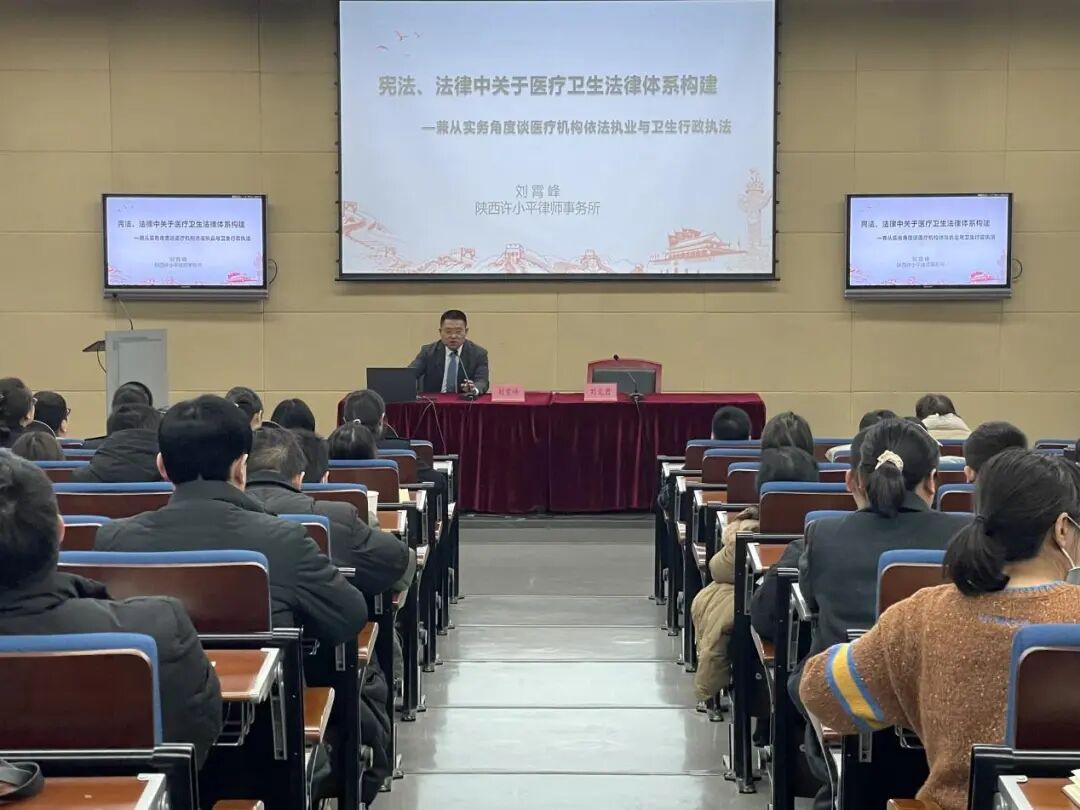 为促进高新区医疗机构及从业人员依法执业、廉洁行医,提高卫生行政执法水平,2024年1月4日下午,陕西许小平律师事务所高级合伙人、行政与医疗法律事务部主任刘霄峰律师受邀为西安高新区社会事业卫生健康监督系统开展培训讲座。培训会由高新区社会事业服务局卫生监督部部长刘文君主持,高新区卫生行政执法系统全体执法人员及全区数十家医疗机构负责人参与培训。