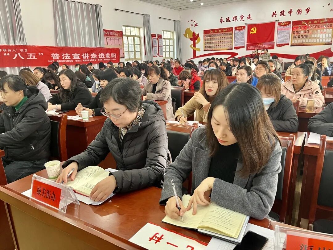 为进一步深入贯彻学习中国妇女第十三次全国代表大会精神,提升基层妇联工作法治化水平和广大妇女群众法治素养,11月22日,由陕西省妇联主办、咸阳市妇联协办、陕西省女法律工作者协会承办的陕西省妇联秦女子“法律明白人”项目“八五”普法宣讲活动在咸阳市县区顺利开展,来自咸阳市泾阳县、三原县的“五好家庭”代表、基层妇联维权干部和各职能部门相关业务干部260余人现场参会学习。