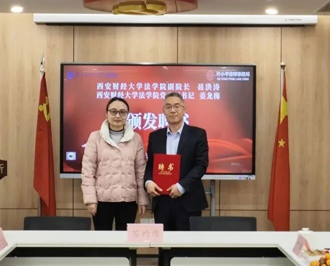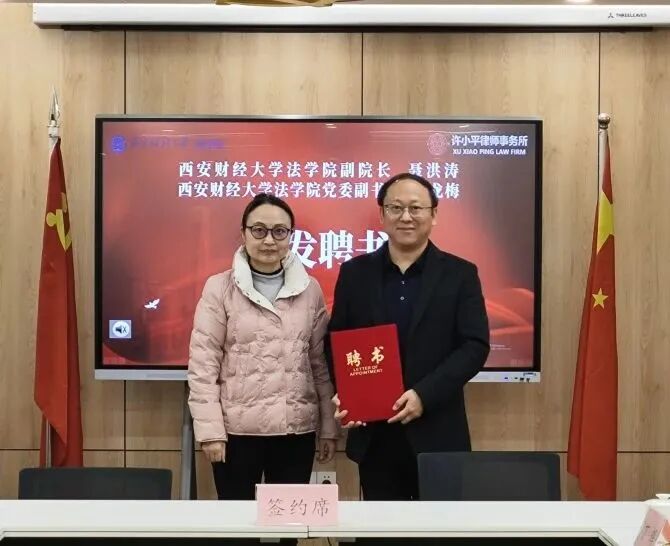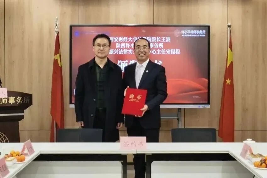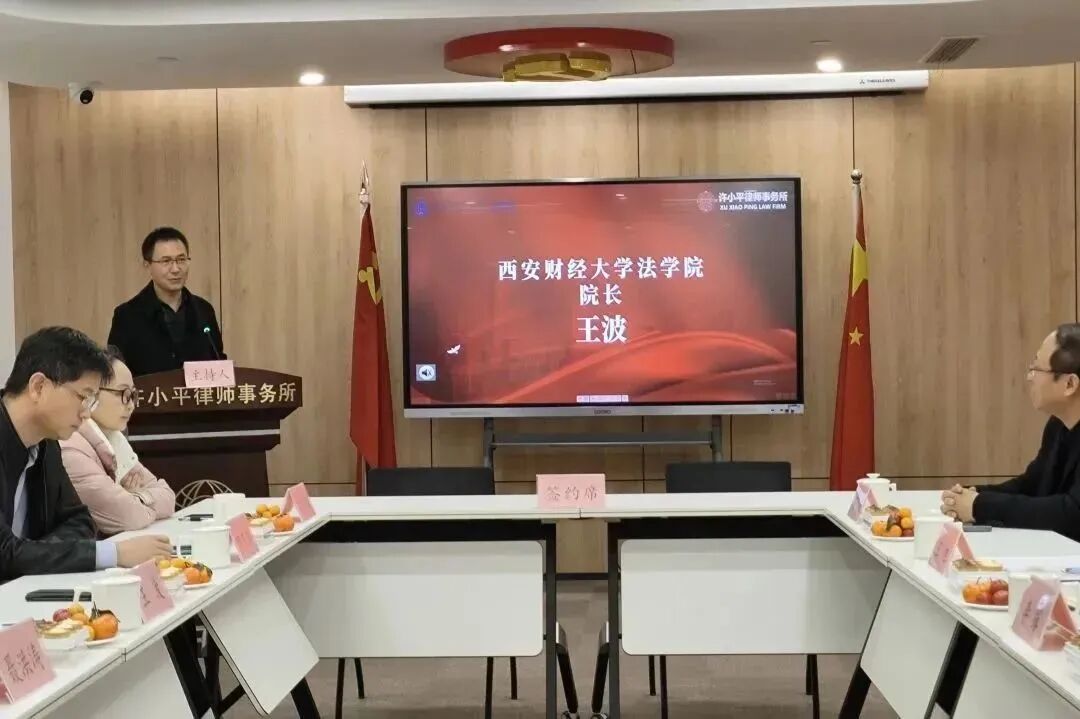 为进一步深化律所与高校协同发展、优势互补、合作共赢的新局面。2023年11月17日下午,西安财经大学法学院与陕西许小平律师事务所合作签约及实践基地授牌仪式在律所五楼多功能厅成功举行。西安财经大学法学院院长王波、党委书记田亚鹏、副院长聂洪涛、党委副书记姜龙梅、教师王军、律所副主任王旭、婚姻家事与财富传承法律事务部主任李露、民商事法律事务部主任丁辉、乡村振兴法律实务研究中心主任宋程程及律师代表共同参与此次会议。 王旭副主任代表律所对西安财经大学法学院王波院长一行的到来表示热烈的欢迎。王旭副主任表示:西安财经大学是西北地区财经、法学教育及研究中心和人文社科研究的重要基地,建校历史悠久,文化底蕴深厚。多年来,为社会培养了大批财经及政法人才,为社会法治建设贡献了高校力量。陕西许小平律师事务所作为扎根于古都西安的本土律师事务所,自成立以来,就矢志不渝地坚持党的领导,始终致力于为广大人民群众提供更优质、更专业、更高效的法律服务。近年来,律所乡村振兴法律实务研究中心始终走在业务创新的最前沿,已经具备了为乡村振兴提供全流程服务的能力。我所与西安财经大学法学院的合作,必将给双方的发展带来新的契机,必将共同绘制法治建设的宏伟蓝图。 王波院长表示:西安财经大学自1979年设立法学专业,法学院经过数年来的发展,现已建立形成一支年龄、学历、职称、学缘结构较为合理的教学科研队伍,学科发展方向逐步明确,研究特色基本形成。法学本科专业先后被评为陕西省名牌专业、陕西省一流专业、国家级一流专业,法学学科先后获批陕西省重点学科、陕西省优势学科。近年来,学院在服务地方经济社会发展和民主法治建设方面取得了显著成绩。陕西许小平律师事务所以厚重、丰沛的文化底蕴;专业、精湛的办案风格;优质、高效的服务水平,在三秦大地百姓心中留下了深刻的印象,是我省律师行业响当当的品牌。相信本次合作,双方能够在法学教育与实务领域的研究、探索、发展开创崭新的未来,为法治陕西的建设贡献法律力量。 随后,王波院长与王旭副主任共同签署了合作协议。 田亚鹏书记向陕西许小平律师事务所授予了“西安财经大学法学院法学实习实践基地”牌匾。 王波院长向宋程程律师颁发客座教授聘书。 聂洪涛副院长与姜龙梅副书记一同向丁辉、李小平、谭云鹏、张震四位律师颁发“西安财经大学法学院实务导师”聘书。