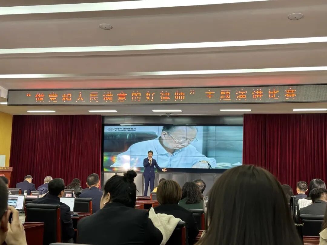 比赛中,16位参赛选手以各自独特的视角,分别从个人经历、执业感受、律师精神等多个角度为大家带来了一场极致的视听盛宴。或慷慨激昂或深情款款或幽默风趣,在展现出演讲魅力的同时,亦表达出爱国爱党积极投身“党和人民满意的律师”伟大事业的情怀。我所王向豪以《负重致远,薪火相传》为题,在娓娓道来中为大家讲述了一个传承的故事。“像许小平律师这样优秀前辈的故事,我们从不或缺。他们有的专业能力超群,称得上是律师行业高质量发展的推动者;有的一心为民,无愧于人民群众合法权益的维护者。我想作为青年律师的我们,应该也必须要传承优秀前辈身上那纯粹、坚毅的品格,为党、为民的信念。因为在未来还有更多的诗篇等待我们去谱写,还有更多的愿景等待我们去描绘”。演讲振聋发聩,摄人心魄,现场嘉宾无一不被这位我省律师界领路人的故事所打动。