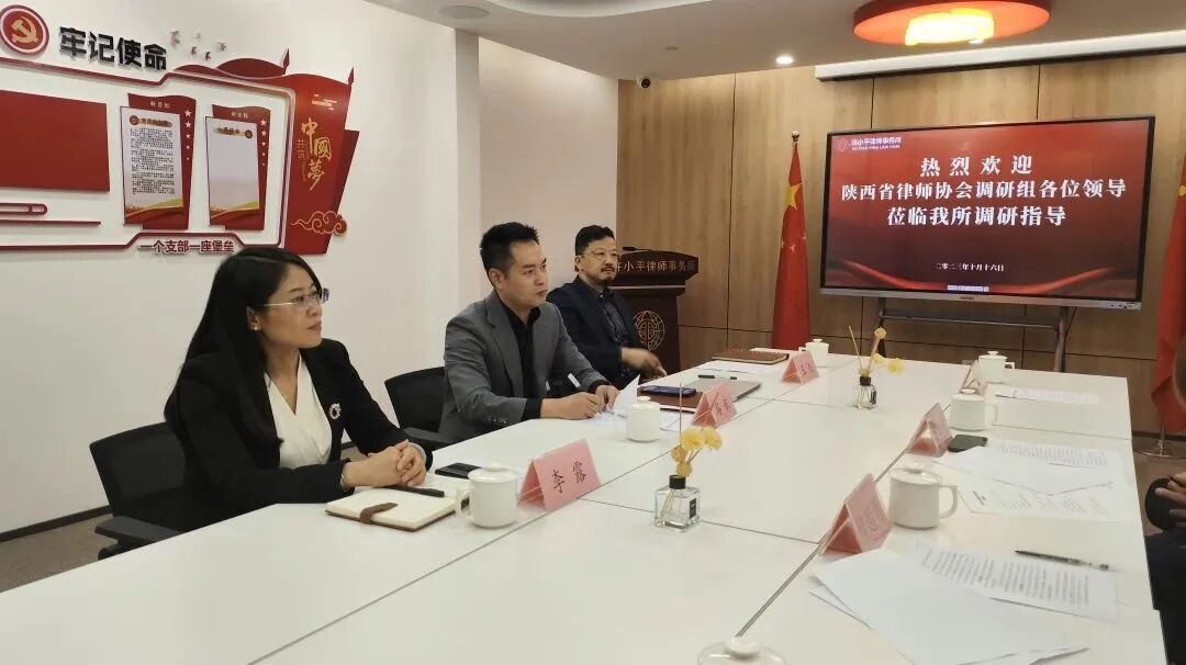 10月16日,陕西省律师协会第二调研组莅临我所调研指导律所规范化建设工作,调研组成员包括:组长——陕西省律师协会企业合规专委会副主任、陕西坤税律师事务所执行主任虞红桂律师、副组长——北京市尚公(西安)律师事务所副主任侯超芳律师。律所党支部书记、主任路航律师;律所副主任、公司金融法律事务部主任王旭律师;律所高级合伙人、婚姻家事与财富传承法律事务部主任李露律师热情接待并参与调研。