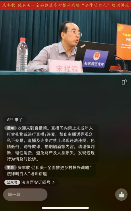 为深入推进“法律明白人”培养工作,不断提升“法律明白人”的专业法律素养和依法解决矛盾纠纷的能力,9月20日,由西安市司法局主办、永乐镇人民政府承办的全市“法律明白人”培训讲座永乐会场成功举办。本次活动特别邀请陕西省三农委员会副主任、陕西许小平律师事务所乡村振兴法律实务研究中心主任宋程程律师开展“乡村振兴战略的法律实践”专题讲座。本次讲座活动以线上线下同步直播的形式开展,全市7000余名“法律明白人”通过集中或分散的形式参与讲座培训。