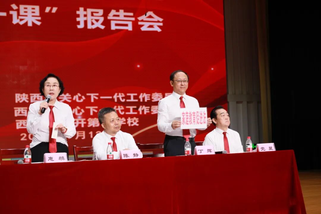 秋风为马迎师生,法言送暖入心中。为深入贯彻落实党的二十大精神,全面执行全国“八五”普法规划,落实中国关工委、教育部和省市区第五届“关爱明天•普法先行”活动的安排部署,切实提升师生的法律素养,创建法治平安校园。9月12日,陕西省第五届“关爱明天•普法先行”秋季开学“法治安全第一课”报告会在西安经开第一学校举行。西安市关工委法治报告团团长、全国法治宣传教育模范、全国“最美五老”陈静老师,报告团副团长、西安市“七五”普法工作先进个人丁辉律师及党星老师,刘蓉老师、惠麟老师为师生进行了一场别开生动的法治教育讲座。