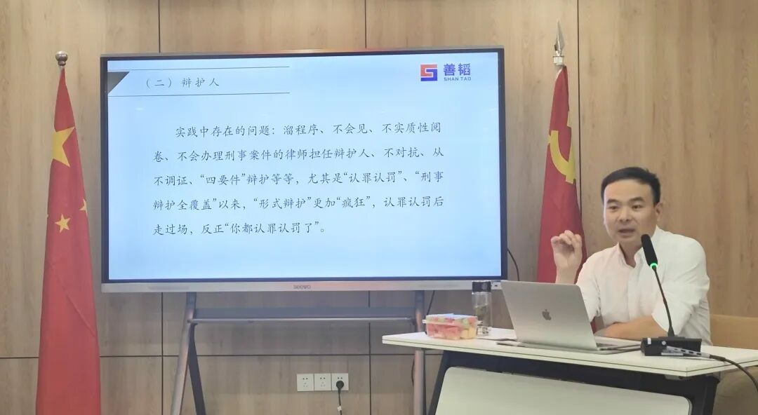 2023年8月25日下午,陕西许小平律师事务所青年律师“卓越”培训计划第十三期成功举行。本期培训特邀陕西善韬律师事务所高级合伙人、刑事部主任朱甲朋律师,开展主题为“公诉案件流程及辩护人工作内容”培训。我所党支部书记、主任路航,高级合伙人、刑事法律事务部主任徐晓云,高级合伙人、乡村振兴法律实务研究中心主任宋程程、资深律师张举会、曹一、李小平及青年律师同仁近三十人参加了培训,本次培训由徐晓云律师主持。