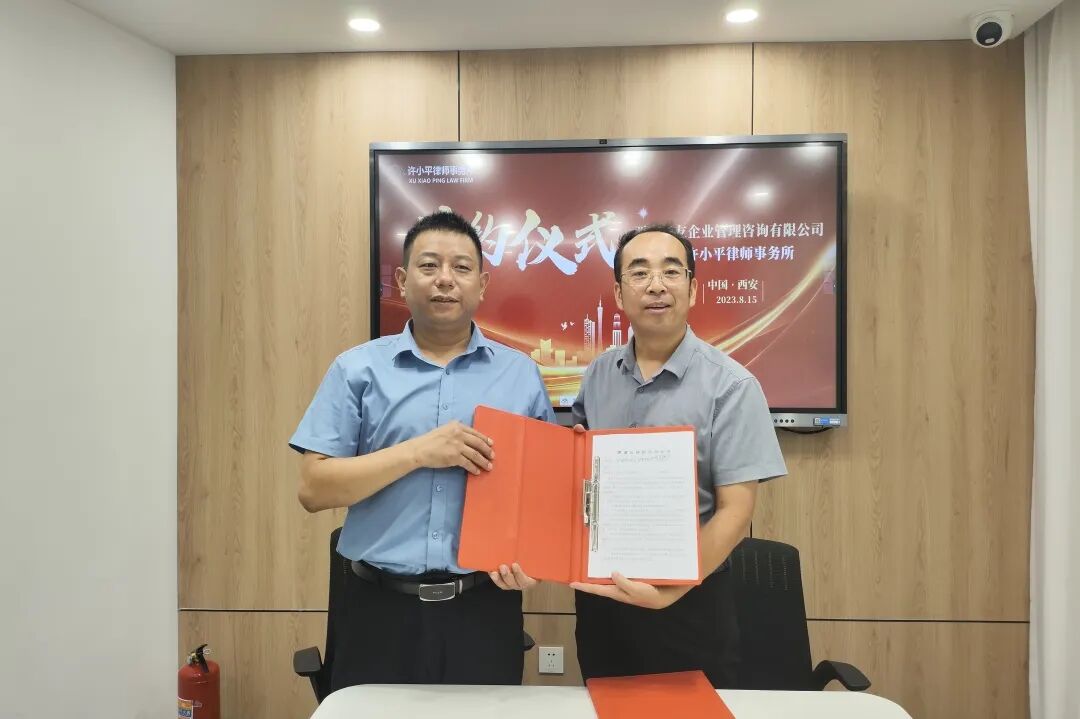 2023年8月15日上午,陕西许小平律师事务所与西安尚友企业管理咨询有限公司战略合作协议签约仪式在陕西许小平律师事务所客户接待中心举行。西安尚友企业管理咨询有限公司总经理尚田武,业务部经理董娟,陕西许小平律师事务所高级合伙人、乡村振兴法律实务研究中心主任宋程程律师,律所咨询顾问张正军参与了签约仪式。