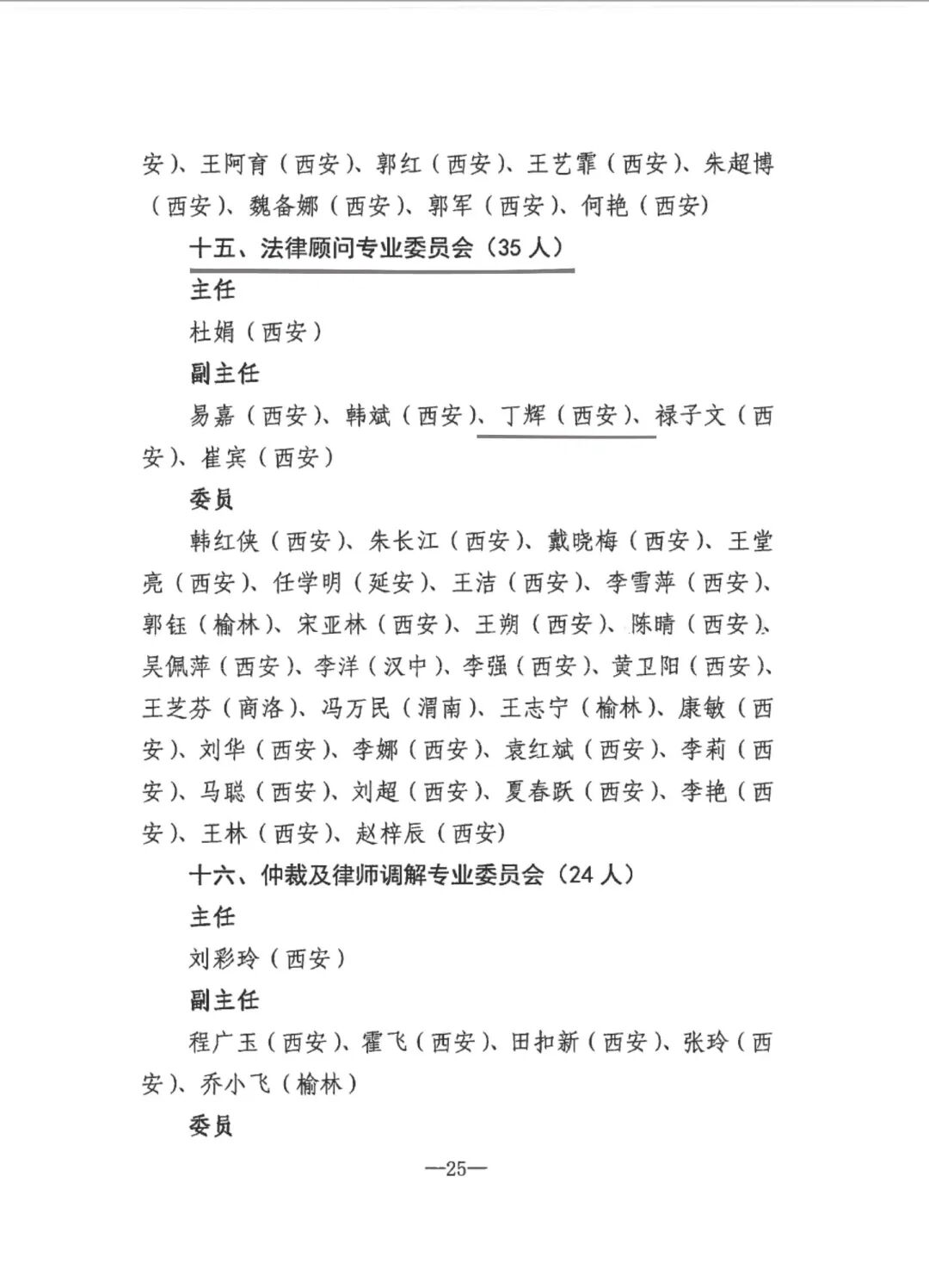2023年7月31日,陕西省律师协会公布了省律协第八届专门、专业委员会人员名单。我所高级合伙人、民商事法律事务部主任丁辉律师入选陕西省律师协会第八届法律顾问专业委员会副主任。
