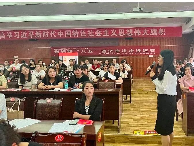 本次活动特别邀请陕西省妇联八五普法讲师团成员、陕西许小平律师事务所婚姻家事与财富传承法律事务部主任李露律师开展“新时代妇女权益保障法治体系如何保障女性权益”专题讲座。来自延安市延长县、延川县、吴起县以及志丹县的县镇村三级基层妇联维权干部和各职能部门相关业务干部500余人现场参会学习。