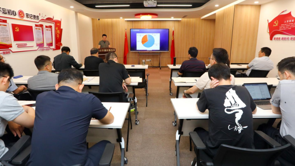 民商部主任丁辉律师从“积极走出去,扩大律所影响力”“强化部门合作,携手共同发展”, “热心公益,不忘初心”等方面总结民商部上半年所取得的成就和优秀典型,例如付震律师参加莲湖区公共法律服务中心驻派出所工作站揭牌仪式并代表莲湖辖区驻派出所全体工作人员发言;陈骥律师应邀为渭南市监察委进行普法专题培训讲座。丁辉律师指出:“律所应当加强文化建设,细化多方面宣传形式,积极讲好我们律所和老中青三代律师的故事,打造一所一品的特色律所文化宣传阵地”。