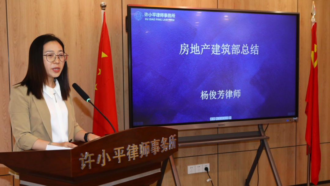 杨俊芳律师代表房地产建筑部向大家介绍了上半年来取得优异的成绩。在非诉领域继续保持与诸多知名房地产企业的紧密合作。在诉讼领域也取得长足进步,个案代理取得好成绩,协助当事人执行收回了大额案款等等。杨俊芳律师谈到下半年,房地产与建筑部将注重业务发展,寻求多样化发展道路,开拓新的领域;并号召部门律师脚踏实地,继续团结一致,争取在年底实现新的突破,创造新价值。