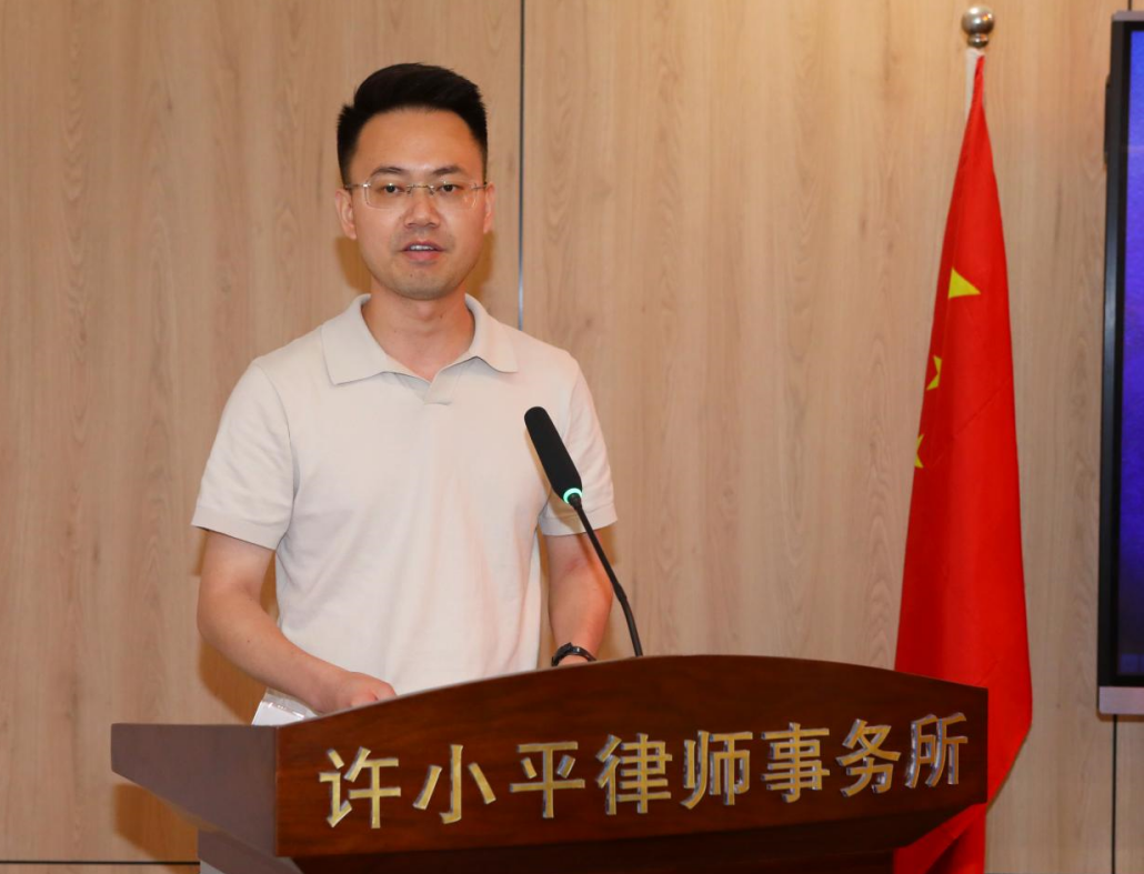 庞森律师代表公司金融部在总结中坦诚不足,提出改进意见;同时向大家分享了自己在律所十余年的成长历程,高度认同“陕西许小平律师事务所”品牌价值带给自己的成长机会,希望青年律师们:“坚持提升自己的专业化能力,锚定细分领域持续发展,快速获得成长和进步”。