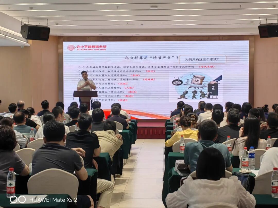 为进一步贯彻落实习近平主席关于加快新时代教育高质量发展的相关讲话精神,提升教育行业规范发展。2023年7月6日下午,溢诚教育2023秋季继续教育项目推介会在西安飞鹿商务酒店会议厅召开,我所运营总监张正军受邀出席并为相关参会人员开展题为“教育培训行业的刑事法律风险防范”的普法专题讲座。陕西溢诚技术学校党支部书记张涛、淇硕教育集团董事长蒋渠红、淇硕教育集团副总裁韩小勇及行业相关项目负责人近两百余人参加此次项目推介会。