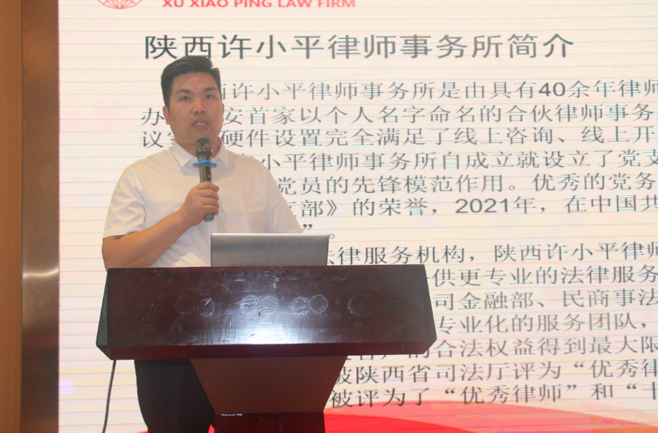 在普法讲座中,张总监首先向大家详细地介绍了律所近年来的历史发展、品牌文化、规模状况以及主要业务,让大家对陕西许小平律师事务所有了更深入的了解。然后,张总监以近年来教育培训行业频发的诸多社会热点问题为背景,通过“分享案例+法律解读”的方式让大家对教培行业可能存在的法律风险有了清晰全面的认识和理解。