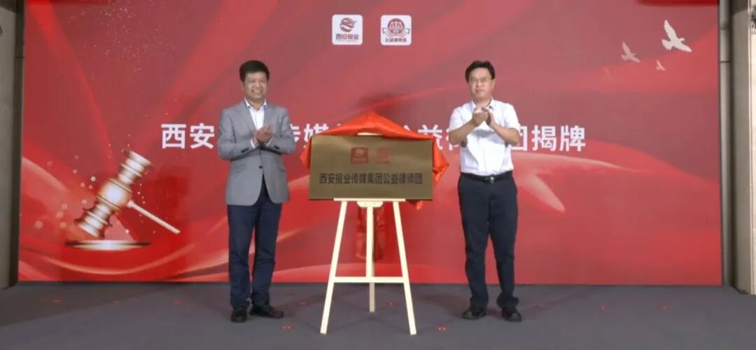 西安报业传媒集团党委书记、董事长、社长张哲和西安市律师协会姚子奇会长二人共同为公益律师团揭牌。相关领导为首批入驻公益律师团的十位律师颁发了聘书。