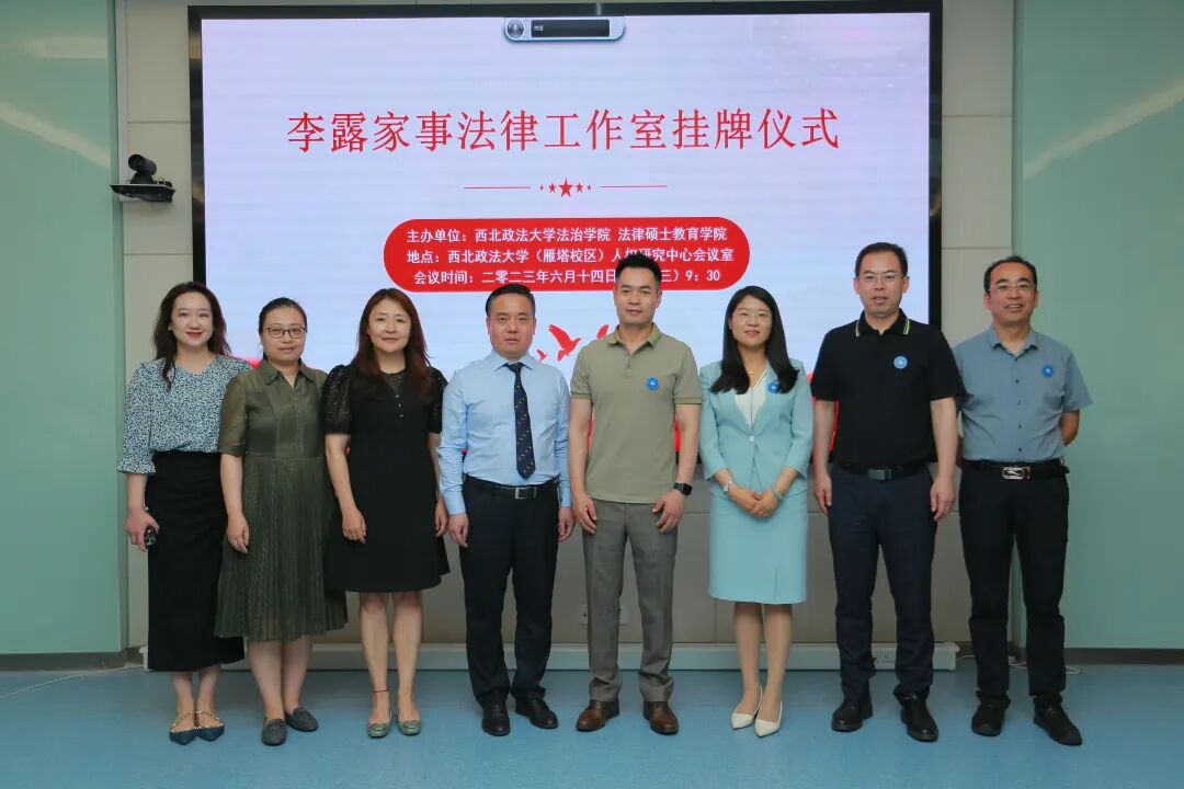 在全体人员的瞩目和掌声中,由西北政法大学研究生院副院长、研工部副部长赵彩如与李露律师共同为“李露家事法律工作室”揭牌。既是“高校+律所”新事业的见证,也是对李露律师团队的鞭策和勉励。
