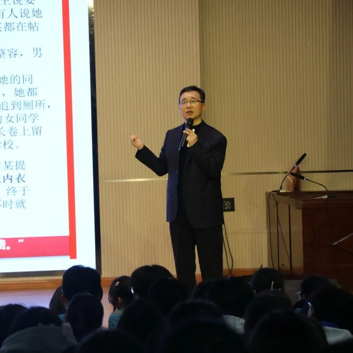 报告题目为《同学,你知道在校园中如何才能保护好自己吗?》。关山中学党委书记张现亲自带领学校高二年级全体师生在图文科技楼报告厅线下收看,同步直播方式邀请家长参会,学生及学校家长近千人参加。