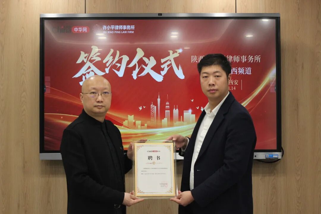 2023年3月14日下午,陕西许小平律师事务所与中华网陕西频道战略合作协议签约授牌仪式在陕西许小平律师事务所客户接待中心顺利举行。