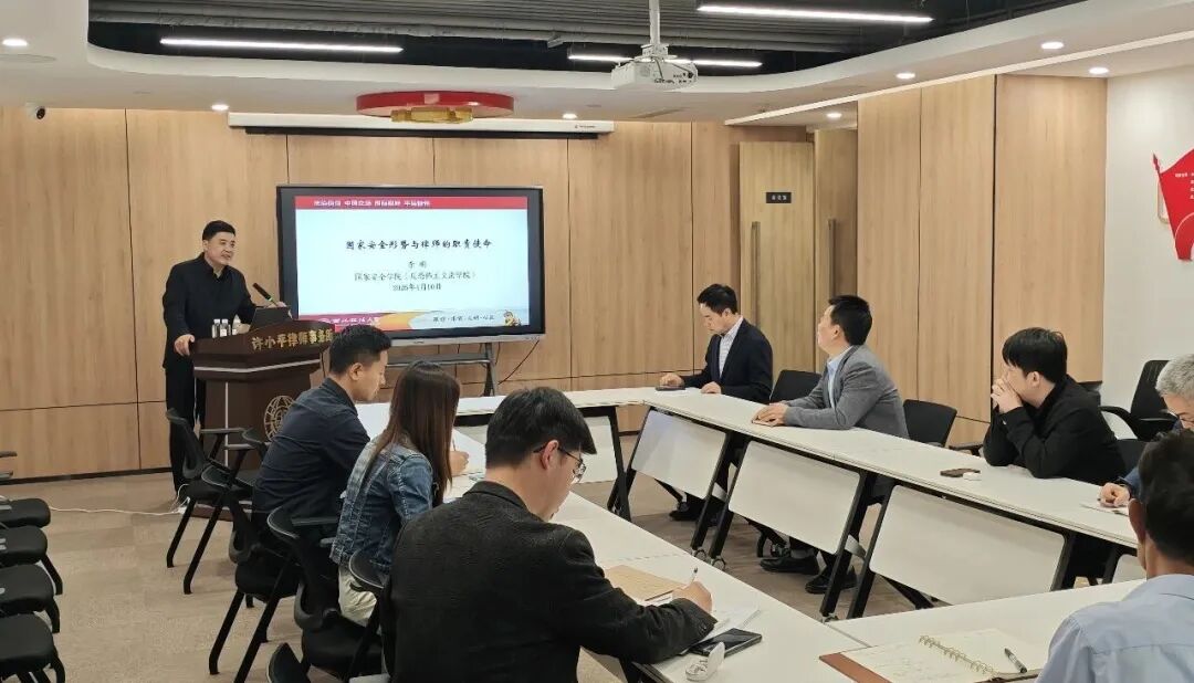 次日,国家安全教育宣讲活动也正式拉开帷幕。西北政法大学国家安全法教研室主任李明走进陕西许小平律师事务所,以《国家安全形势与律师的职责使命》为题为全体律师作专题讲座。他紧扣当前复杂的国际国内安全形势,深度解析了律师在维护国家安全、防范执业风险中的主体责任与使命担当,其敏锐的理论视角与生动的实践启发,赢得了在场律师的高度评价,进一步促进了校律双方的专业深融合。